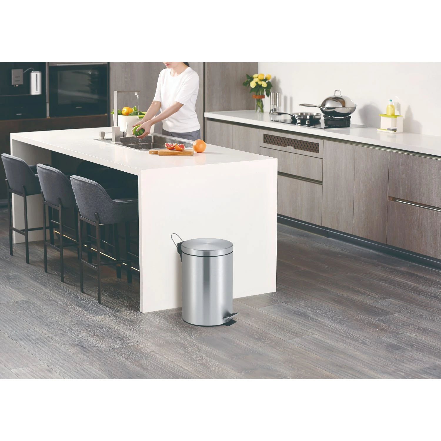 Voeg stijl en functionaliteit toe aan je afvalbeheer met de Eko Pedaalemmer 20 liter Classic. Deze ronde pedaalemmer is gemaakt van hoogwaardig mat-zilver RVS en heeft een inhoud van 20 liter, waardoor het perfect is voor gebruik in keukens, badkamers of kantoren. Met een diameter van 29 cm en een hoogte van 46 cm heeft de pedaalemmer een compact formaat dat gemakkelijk in elke ruimte past. De stevige pedaal zorgt voor een moeiteloze en hygiënische bediening, terwijl het deksel geruisloos sluit dankzij het soft-close mechanisme. De Eko Pedaalemmer Classic is een tijdloos ontwerp dat functionaliteit en elegantie combineert, waardoor het een waardevolle toevoeging is aan je interieur. Upgrade je afvalbeheer met de Eko Pedaalemmer Classic en geniet van een nette en georganiseerde omgeving.