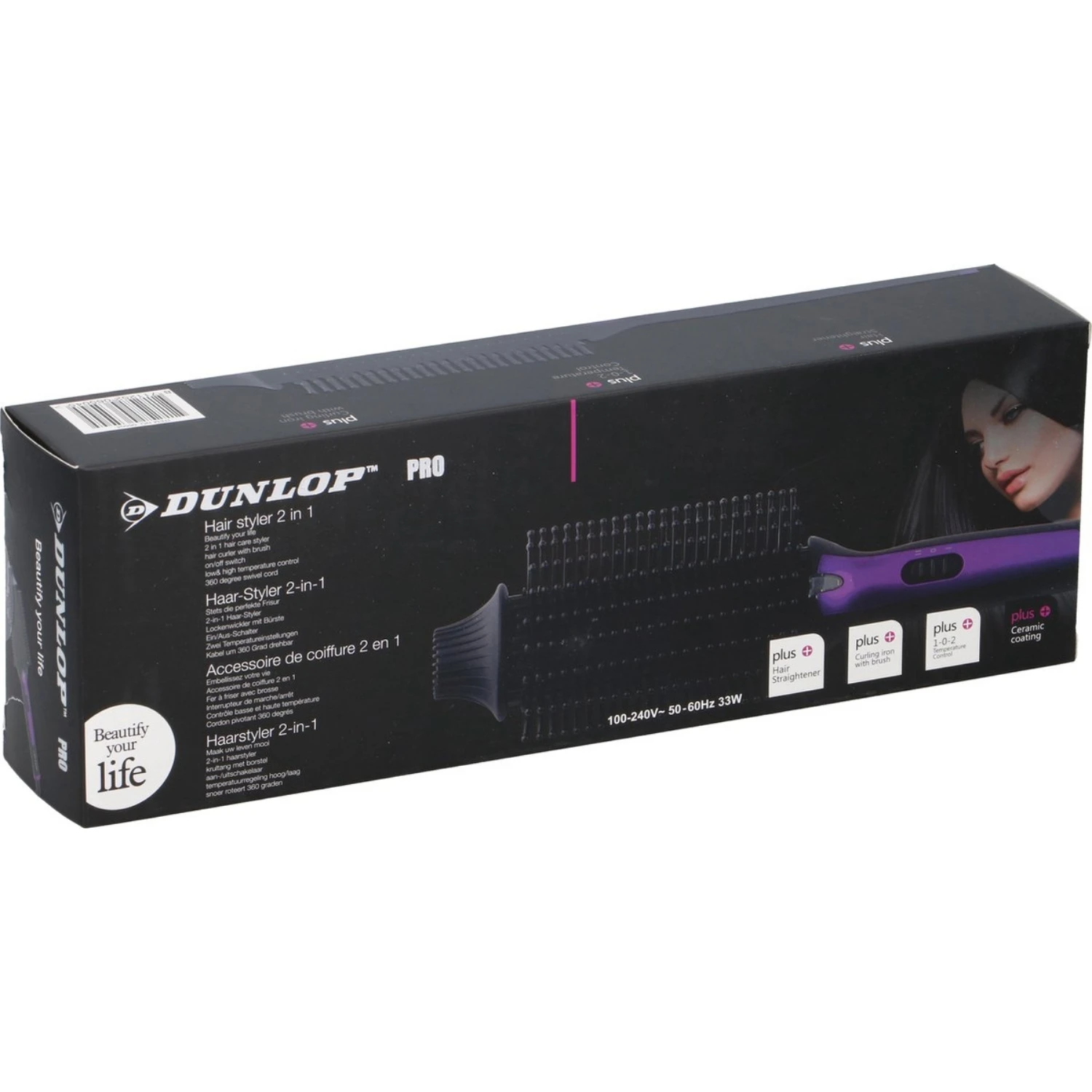 Krul je haren met deze Dunlop 2-in-1 föhnborstel en creëer volume in je haar. De roterende krulborstel heeft een temperatuurregelaar tot 180ºC. Hij is binnen ca. 4 minuten warm en heeft een LED-indicator.