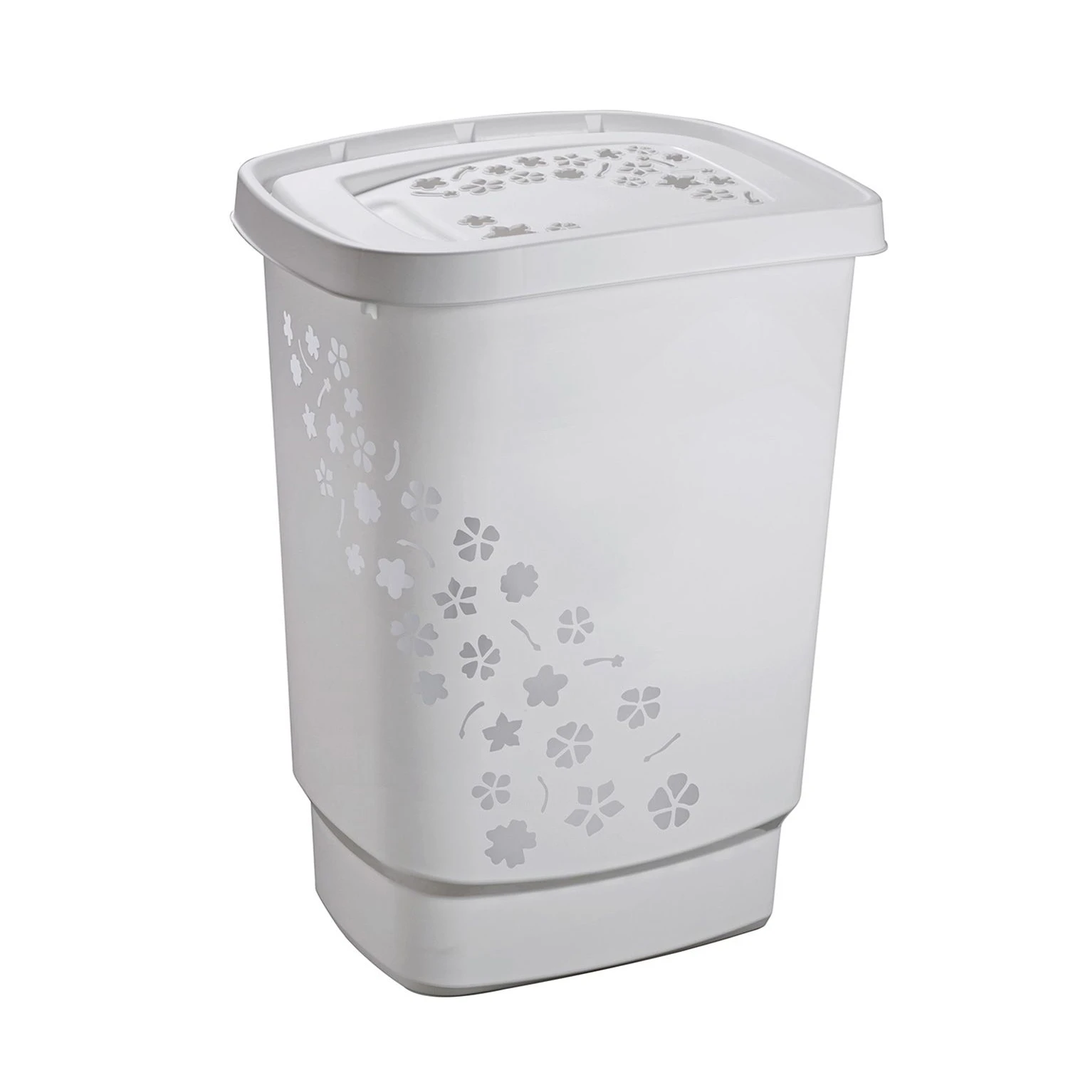 Met afmetingen van 447 mm breed, 347 mm diep en 605 mm hoog past de Rotho Wasbox Design 55 l FLOWERS Cool Grey perfect in elke wasruimte of badkamer. De wasmand is eenvoudig te verplaatsen, dankzij de geïntegreerde handgrepen aan de zijkanten.