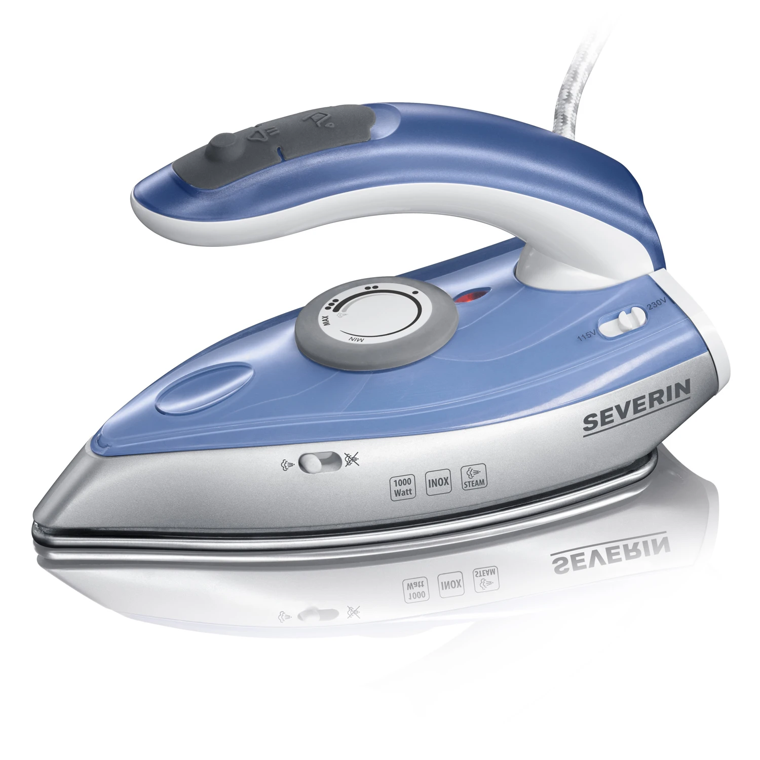 Deze fijne stoomstrijkijzer is geschikt voor 115 Volt en 230 Volt en heeft een handige opklapbare handgreep.