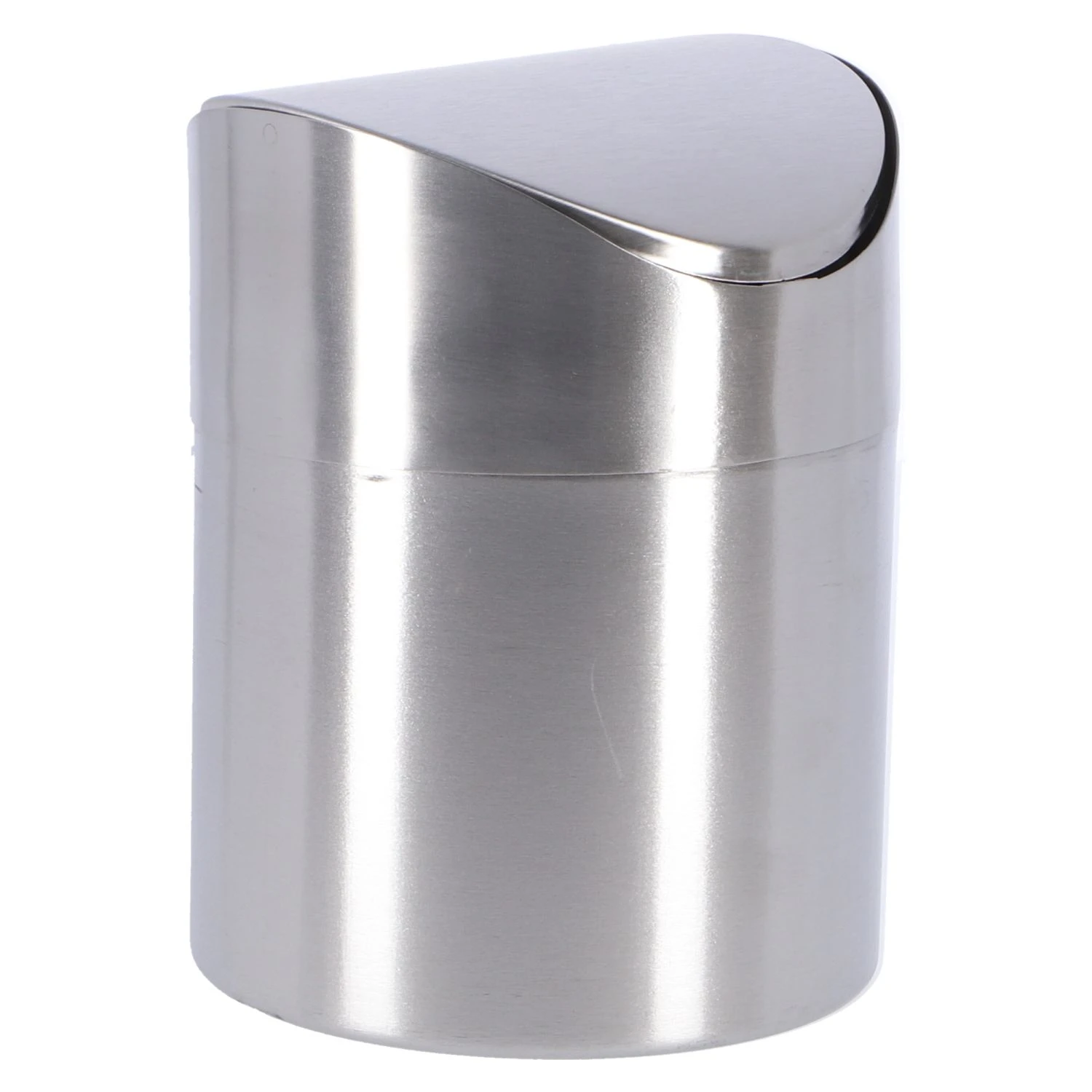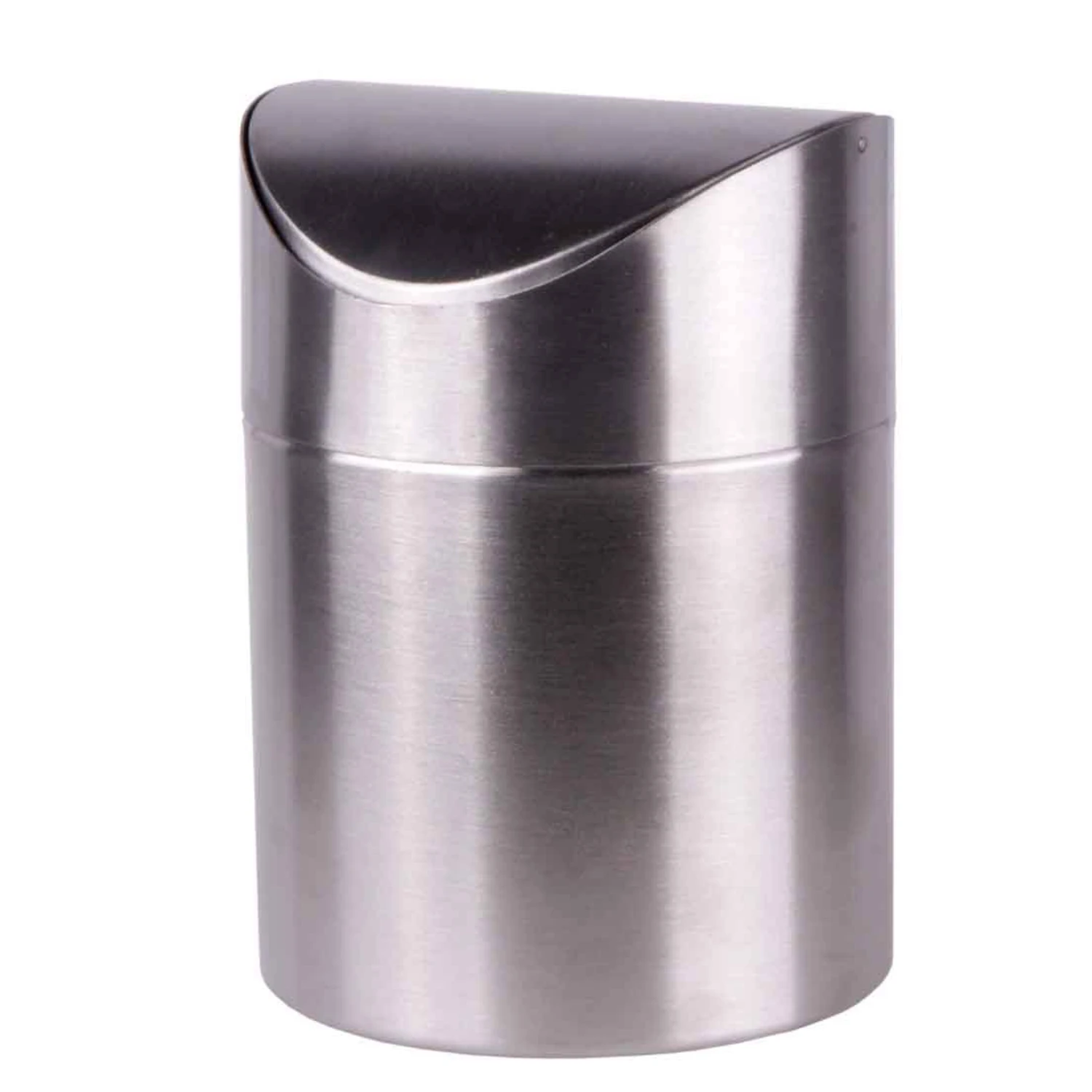 Ben jij op zoek naar een klein tafel afvalbakje, dan ben je hier op de juiste plek! Dit mat RVS prullenbakje met swing-deksel is perfect voor op tafel, en kan voor allerlei doeleinden gebruikt worden: het stof uit jouw wasdroger’s filter kan er in, maar je kunt hem ook gebruik wanneer jij de punten van jouw potloden gaat slijpen, of als je kluwen vol met garen over tafel verspreidt hebt liggen vanwege een naaiproject! Formaat: 16.5x12cm.